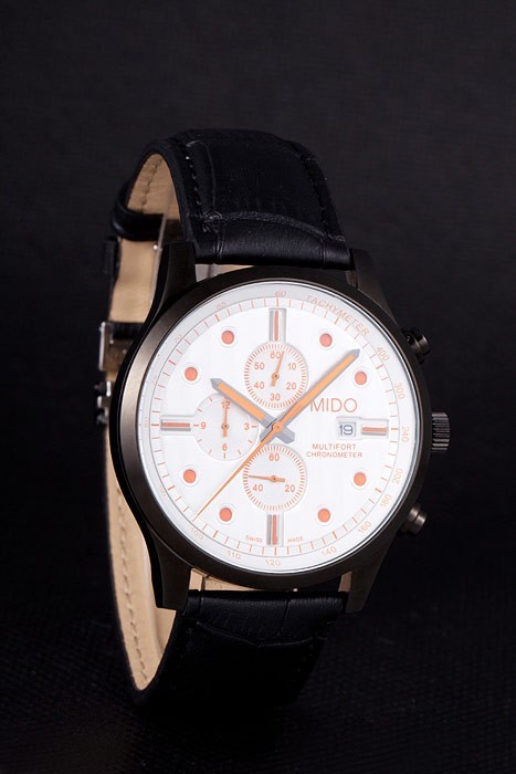Mido Multifort Black Croco Leather Strap Orange Dial Details 80289