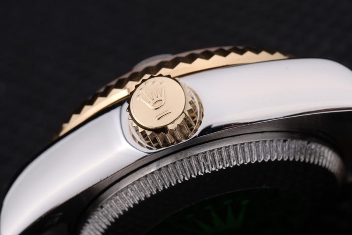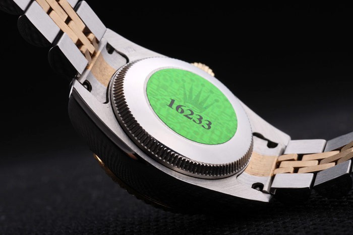 Back: Stainless steel push-in case back with green Rolex logo stamp