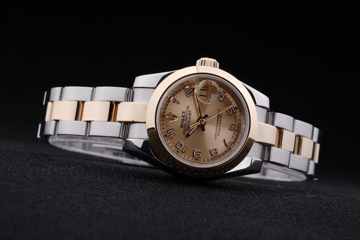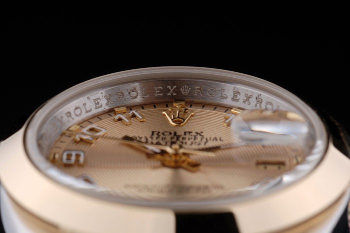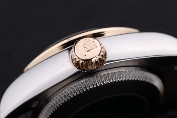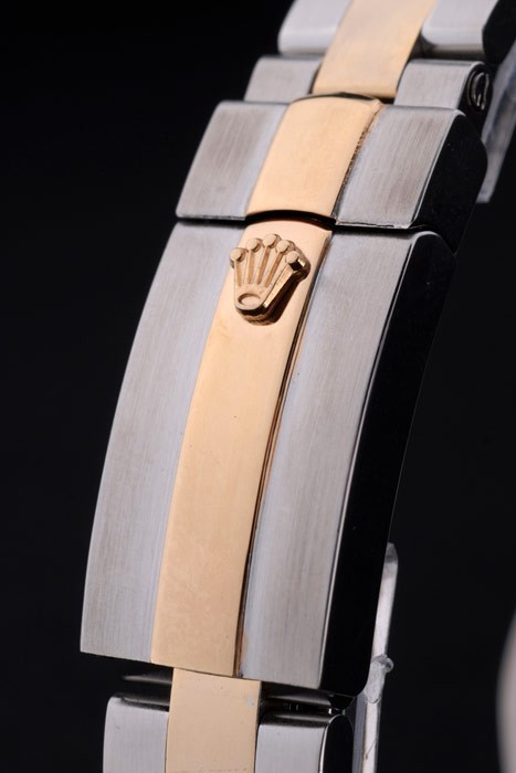 Crown: 18k yellow gold plated steel cutwork crown with Rolex logo