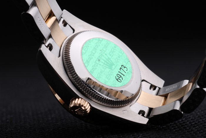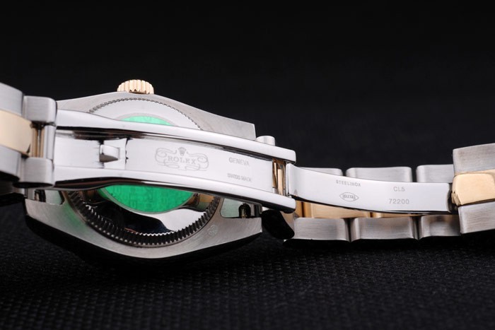 Back: Stainless steel push-in case back with green Rolex logo stamp