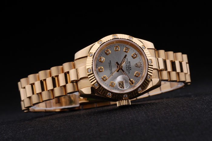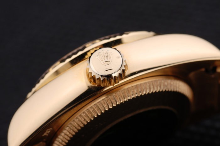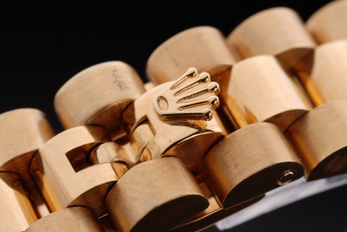 Crown: 18k yellow gold plated steel cutwork crown with Rolex logo