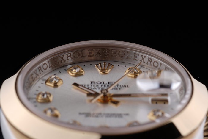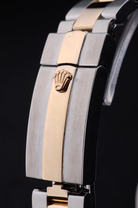 Crown: 18k yellow gold plated steel cutwork crown with Rolex logo