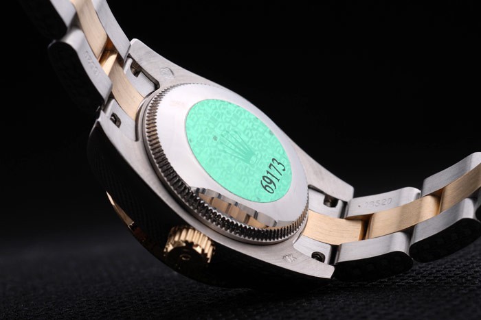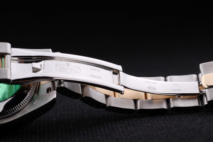 Back: Stainless steel push-in case back with green Rolex logo stamp