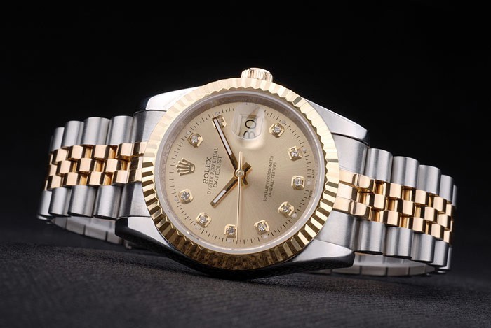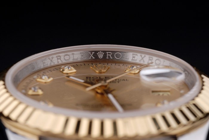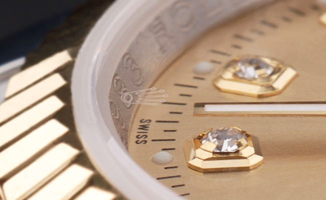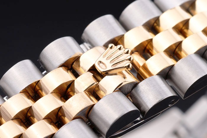 Crown: 18k yellow gold plated steel cutwork crown with Rolex logo