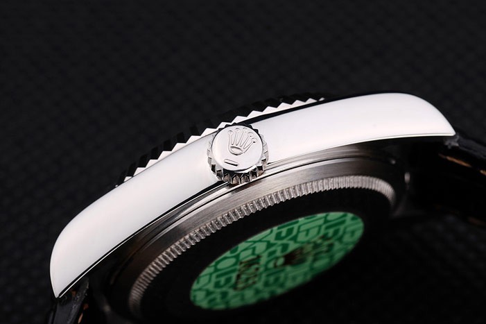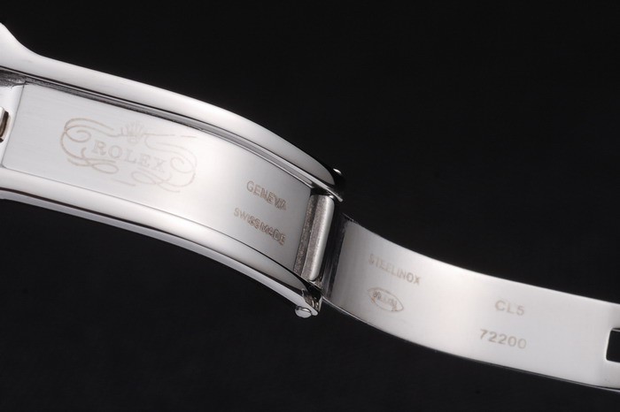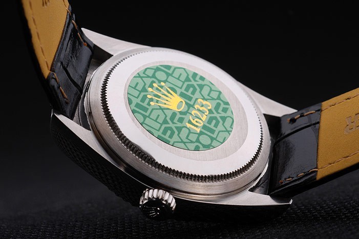 Back: Stainless steel push-in case back with green Rolex logo stamp