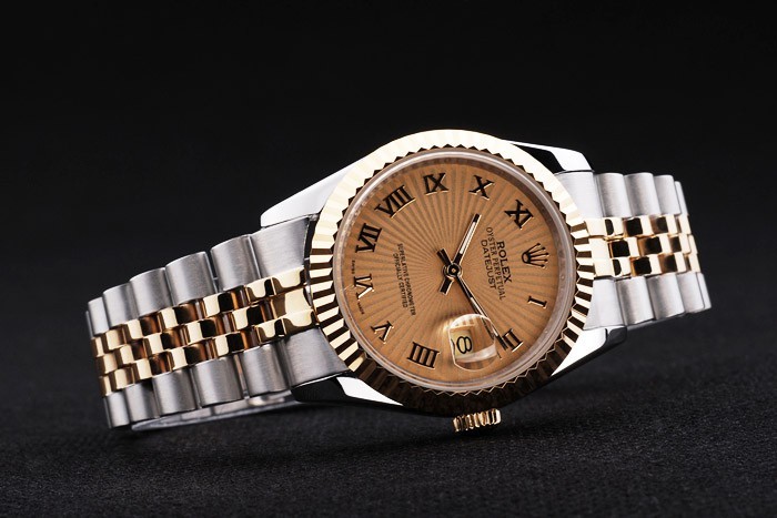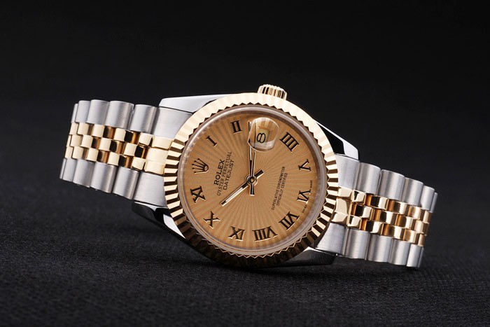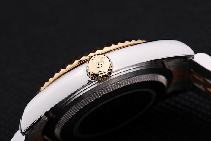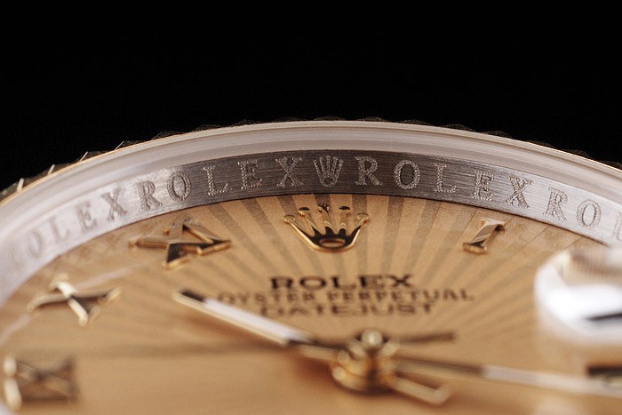 Crown: 18k yellow gold plated steel cutwork crown with Rolex logo