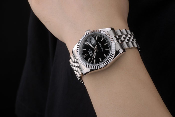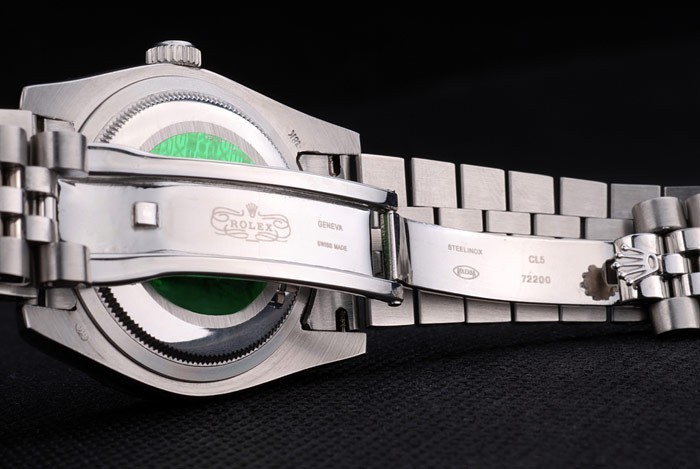 Back: Stainless steel push-in case back with green Rolex logo stamp