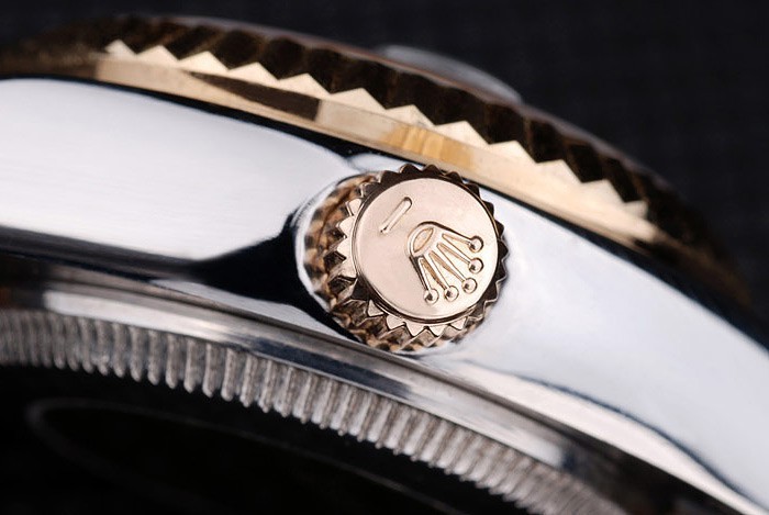 Crown: 18k yellow gold plated steel cutwork crown with Rolex logo