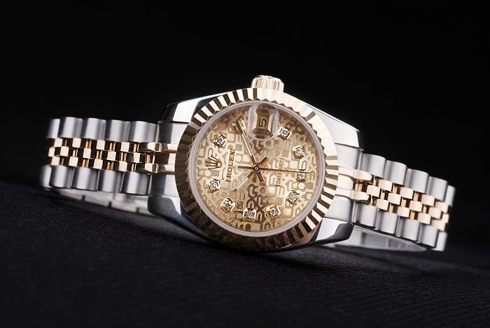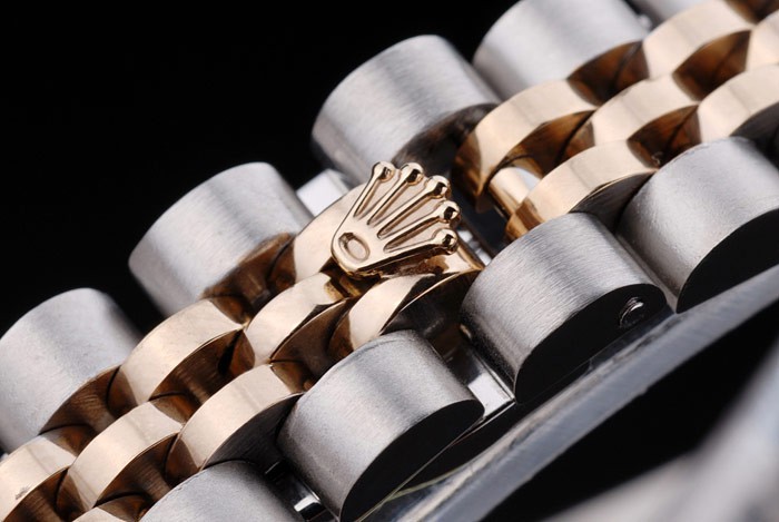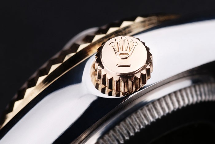 Crown: 18k yellow gold plated steel cutwork crown with Rolex logo