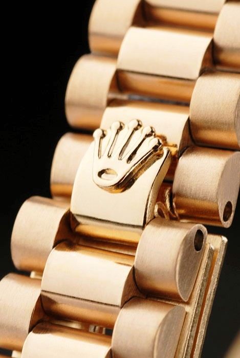 Crown: 18k yellow gold plated steel cutwork crown with Rolex logo