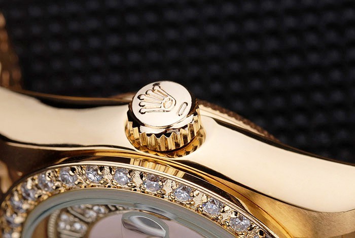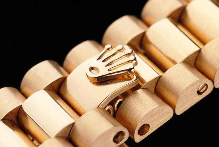 Crown: 18k yellow gold plated steel cutwork crown with Rolex logo