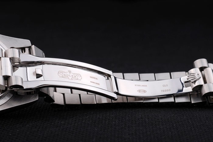 Bracelet: Brushed and polished stainless steel bracelet with Rolex engraving hidden clasp displaying the Rolex logo