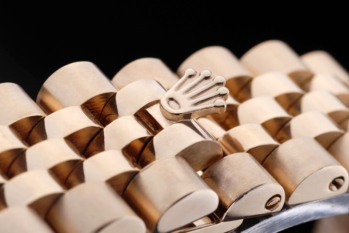 Crown: 18k yellow gold plated steel cutwork crown with Rolex logo