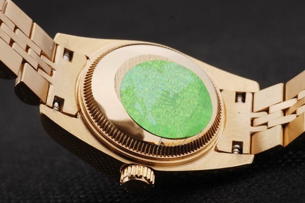 1Back: Push back in 18K yellow gold with green Rolex sticker and markings