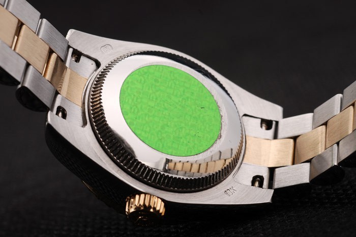 1Back: Push in stainless steel back with green Rolex sticker and markings