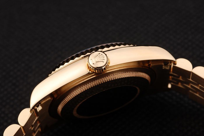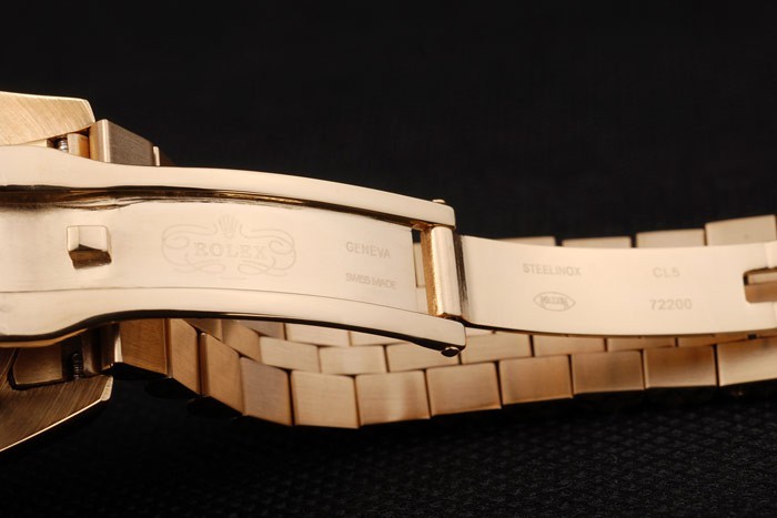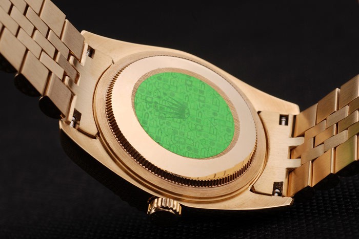 Back: Push back in 18K yellow gold with green Rolex sticker and markings