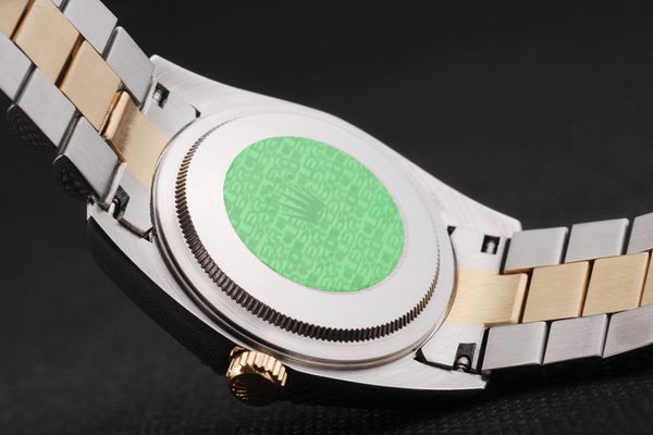 Back: Push in stainless steel back with green Rolex sticker and markings