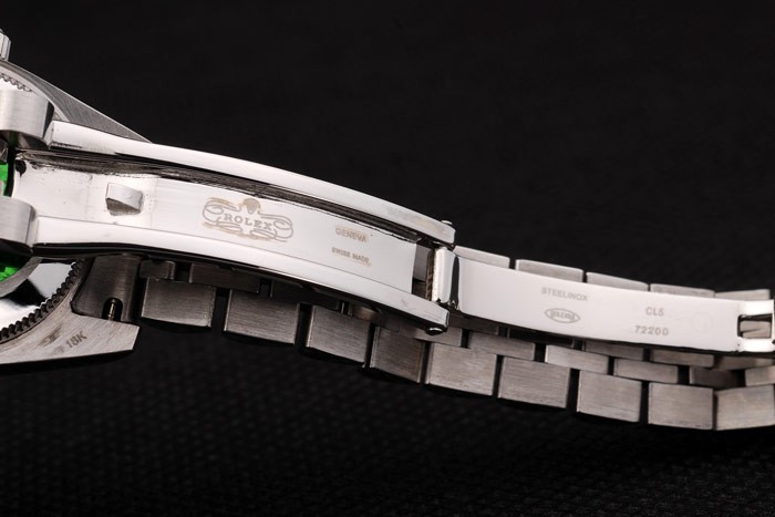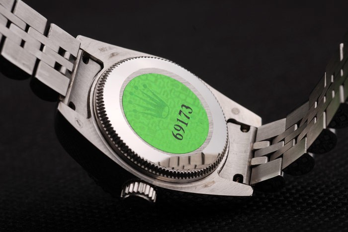 1Back: Push in stainless steel back with green Rolex sticker and markings