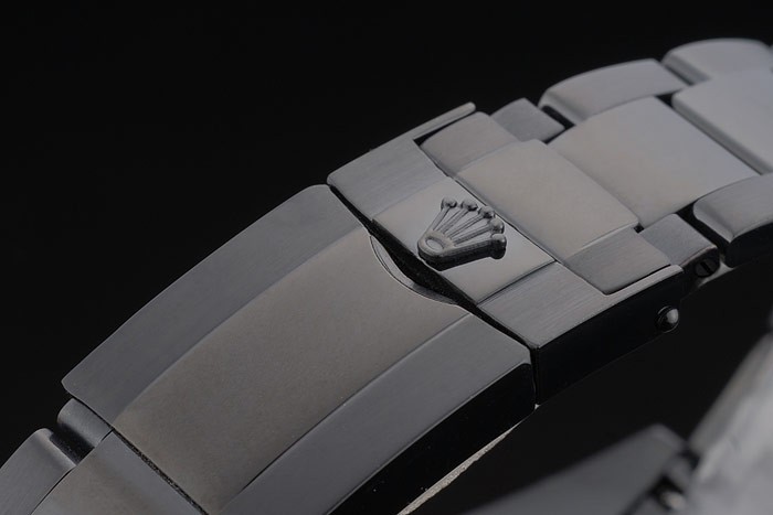 Crown: Ion plated cutwork crown with Rolex logo and a push button crown on either side of it