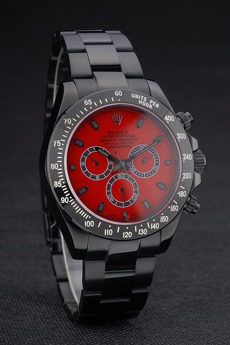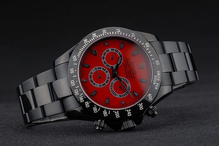 1 review for Rolex Daytona Black Ion Plated Tachymeter Black Stainless Steel Strap Red Dial 80248