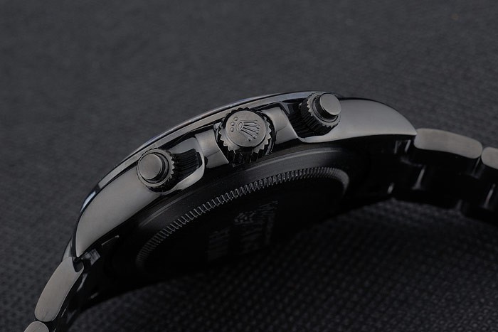 Crown: Ion plated cutwork crown with Rolex logo and a push button crown on either side of it