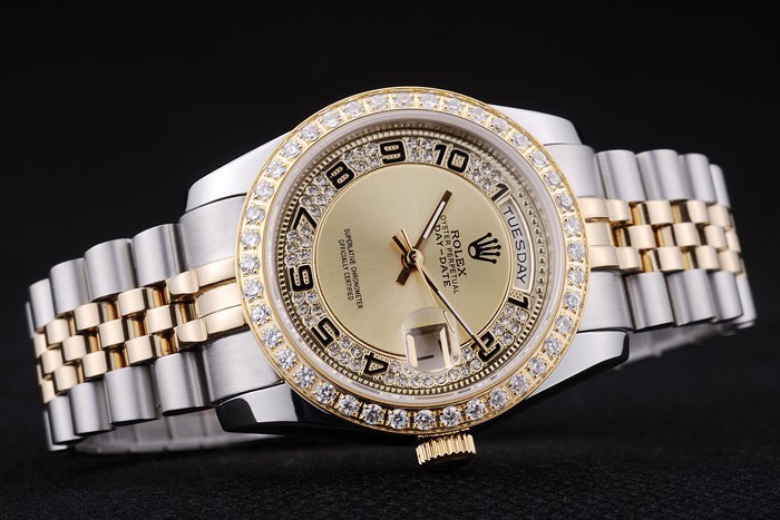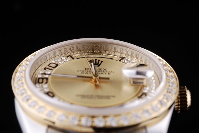 Crown: 18k yellow gold plated cutwork crown with Rolex logo engraving