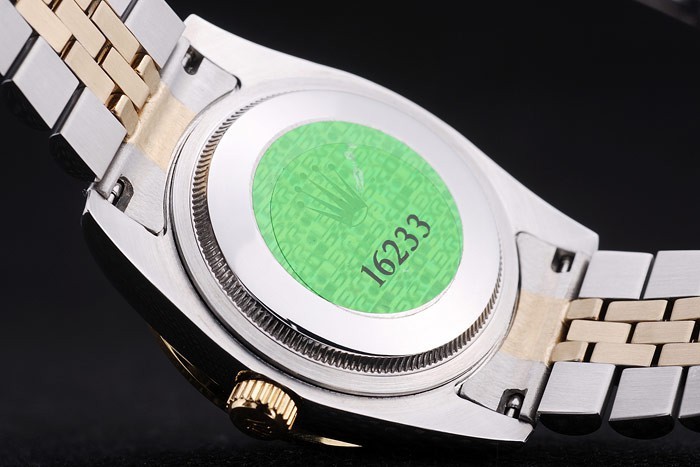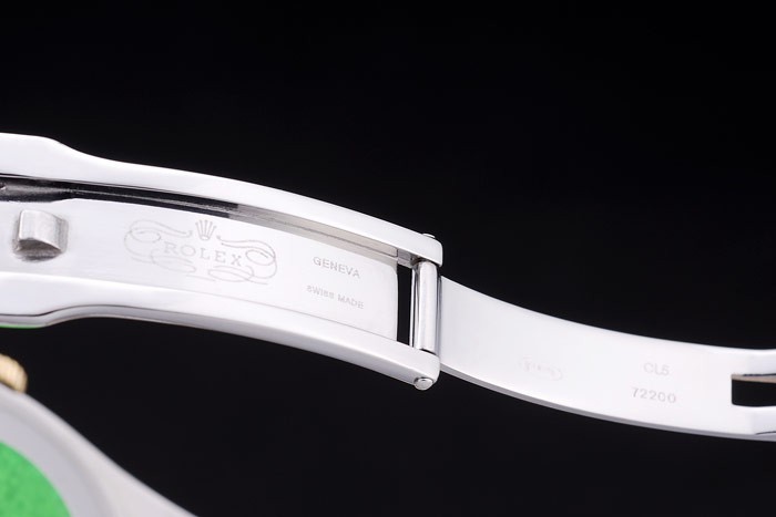 Back: Stainless steel snap-in back with green Rolex authenticity sticker