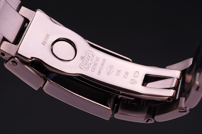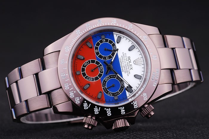Back: Rosy brown powder coated brushed stainless steel snap-in back with Rolex inscription