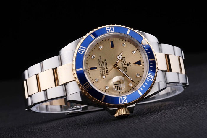 Crown: 18k yellow gold plated steel cutwork crown with Rolex logo