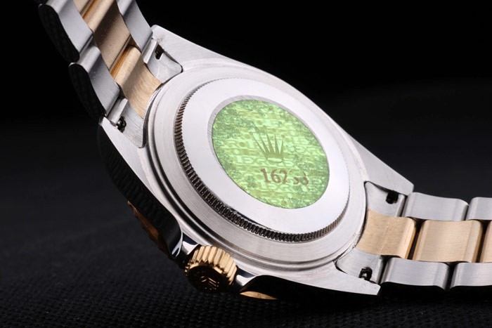 Back: Stainless steel push-in case back with green Rolex engraving stamp