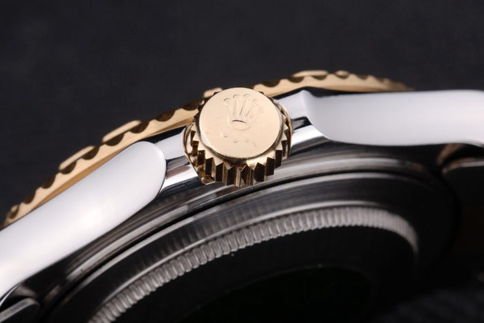 Crown: 18k yellow gold plated steel cutwork crown with Rolex logo