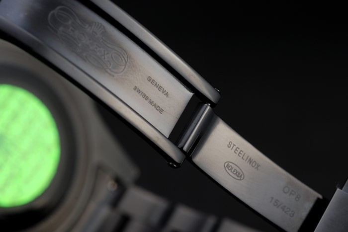 Back: Ion-plated snap-in back with green Rolex authenticity sticker