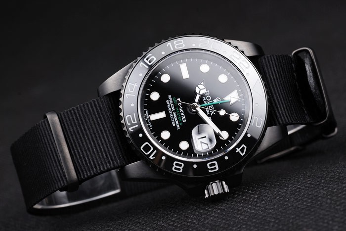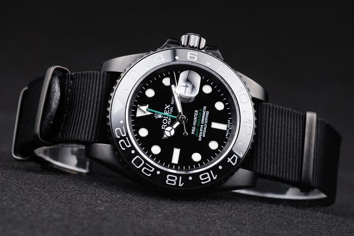 Swiss Rolex GMT Master II Pro-Hunter Black Fabric Strap Black Dial